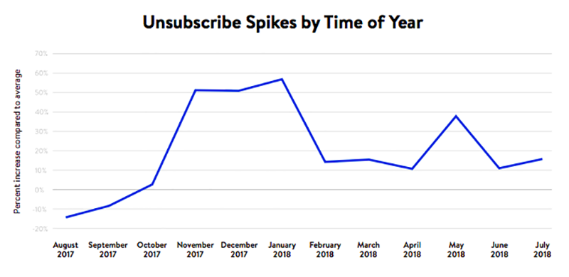 As we head into the holiday season, it’s important to note that unsubscribes spike well above average in November, December and January.