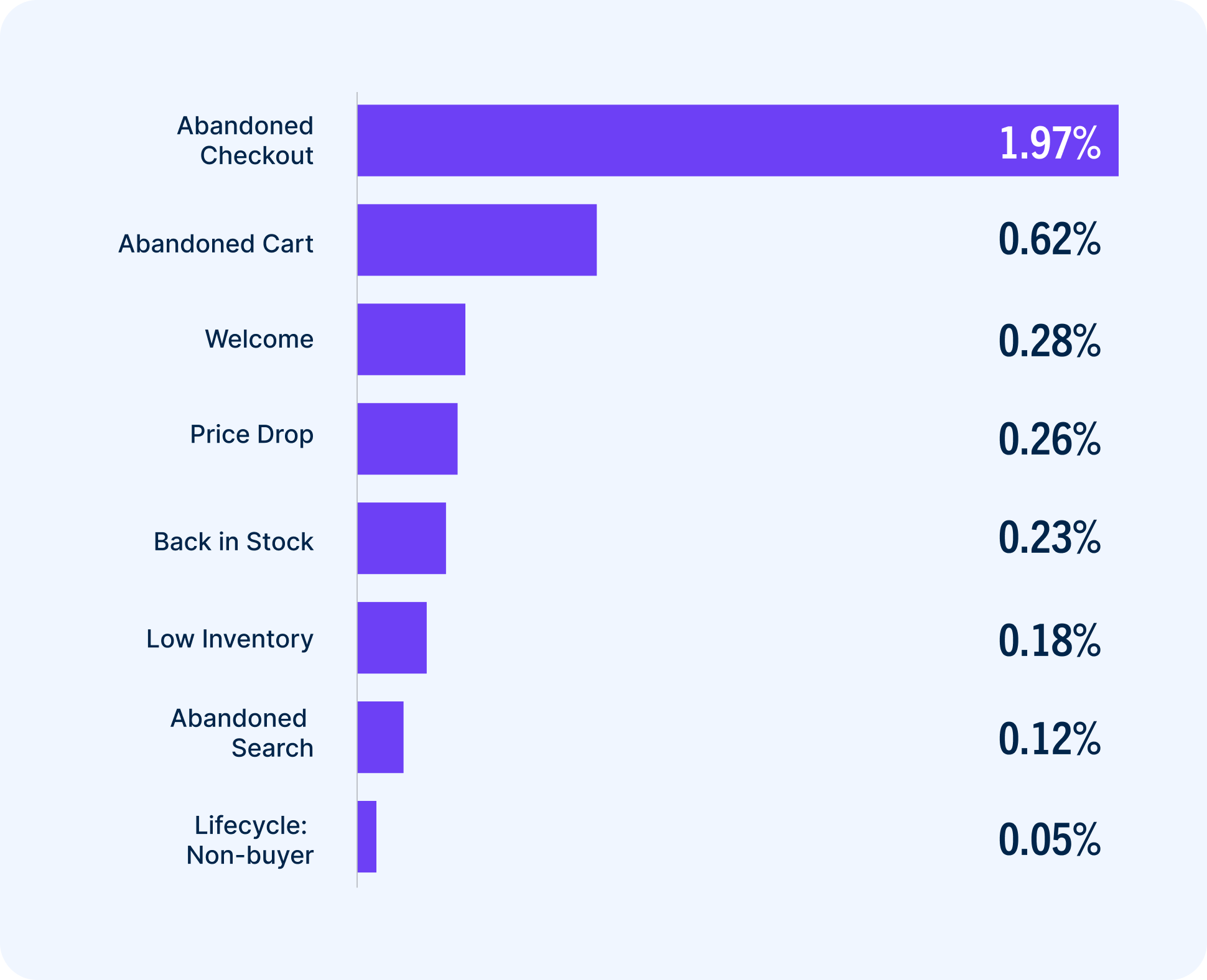 These conversion rates are lower than those in the previous section. That’s normal. The email campaigns benchmarked here are specifically built for repeat purchases, which are more of an uphill battle for retailers.