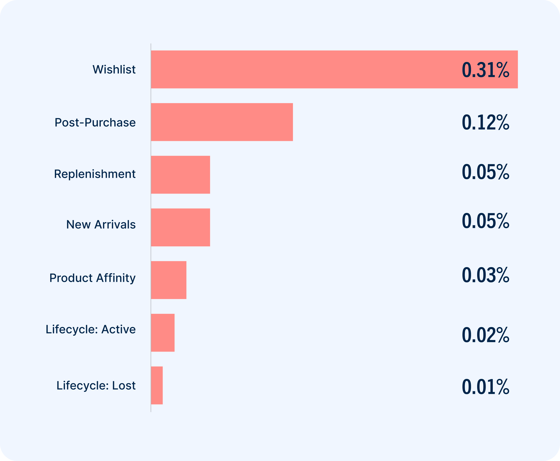 Still, the trends align. Adding an item to a wishlist shows strong purchase intent. It’s no surprise that wishlist emails drove the most conversions in this category.