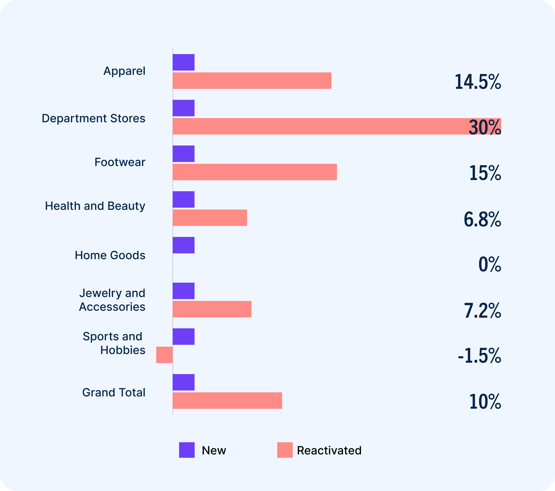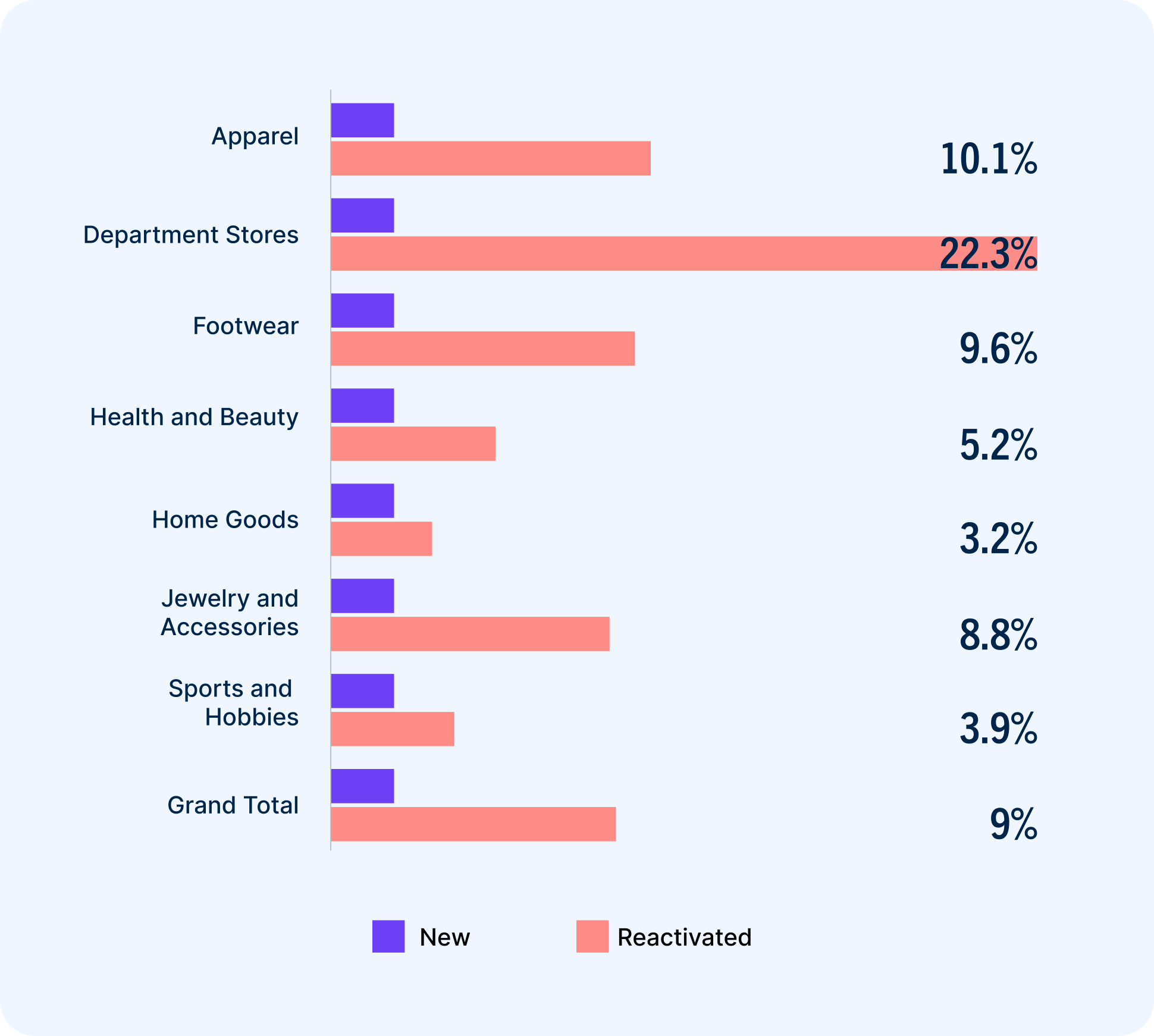 Reactivation rate: The percentage of lapsed customers retailers were able to reactivate