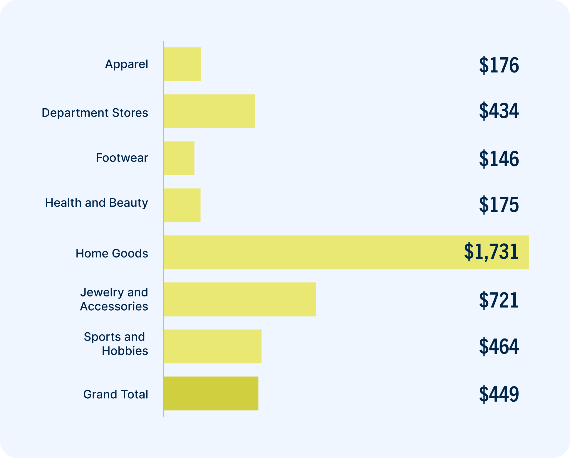 Average order values vary wildly, which is expected. Home goods, and jewelry and accessories naturally have higher price points than the majority of apparel, or health and beauty products.